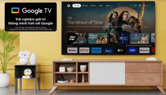 Giải trí thông minh, đầy tiện nghi cùng Hệ điều hành Google TVHệ điều hành Google TV với thiết kế giao diện trực quan, thân thiện và dễ sử dụng. Bên cạnh đó là kho ứng dụng phong phú đáp ứng nhu cầu giải trí đa dạng với hơn 700,000 phim ảnh và 10,000 ứng dụng. |