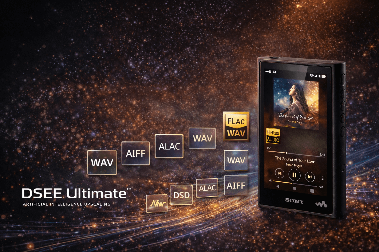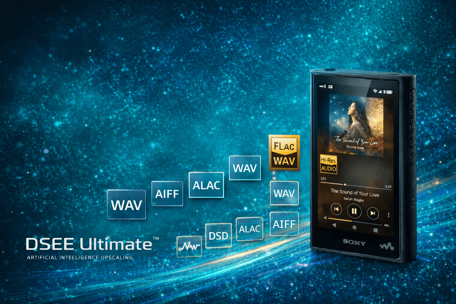 Công nghệ DSEE Ultimate™ sử dụng AI giúp nâng cấp chất lượng nhạc nén, tái tạo lại những chi tiết đã mất, mang đến âm thanh sống động và đầy cảm xúc hơn – kể cả khi nghe nhạc trực tuyến.
