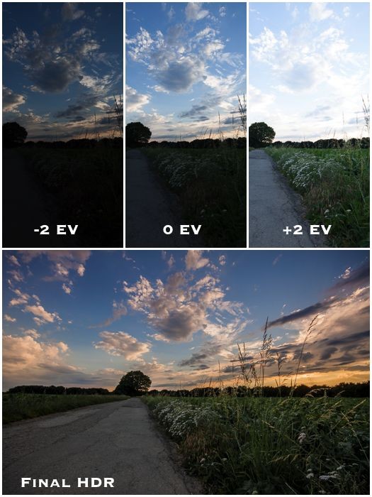 Chụp nhiều bức ảnh: Sẽ có từ hai bức ảnh trở lên được chụp với độ phơi sáng khác nhau. Điều này thường bao gồm một bức ảnh được chụp ở độ phơi sáng bình thường, một bức ảnh được làm sáng để ghi lại chi tiết trong vùng tối, và một bức ảnh được làm tối để bảo toàn chi tiết trong vùng sáng.